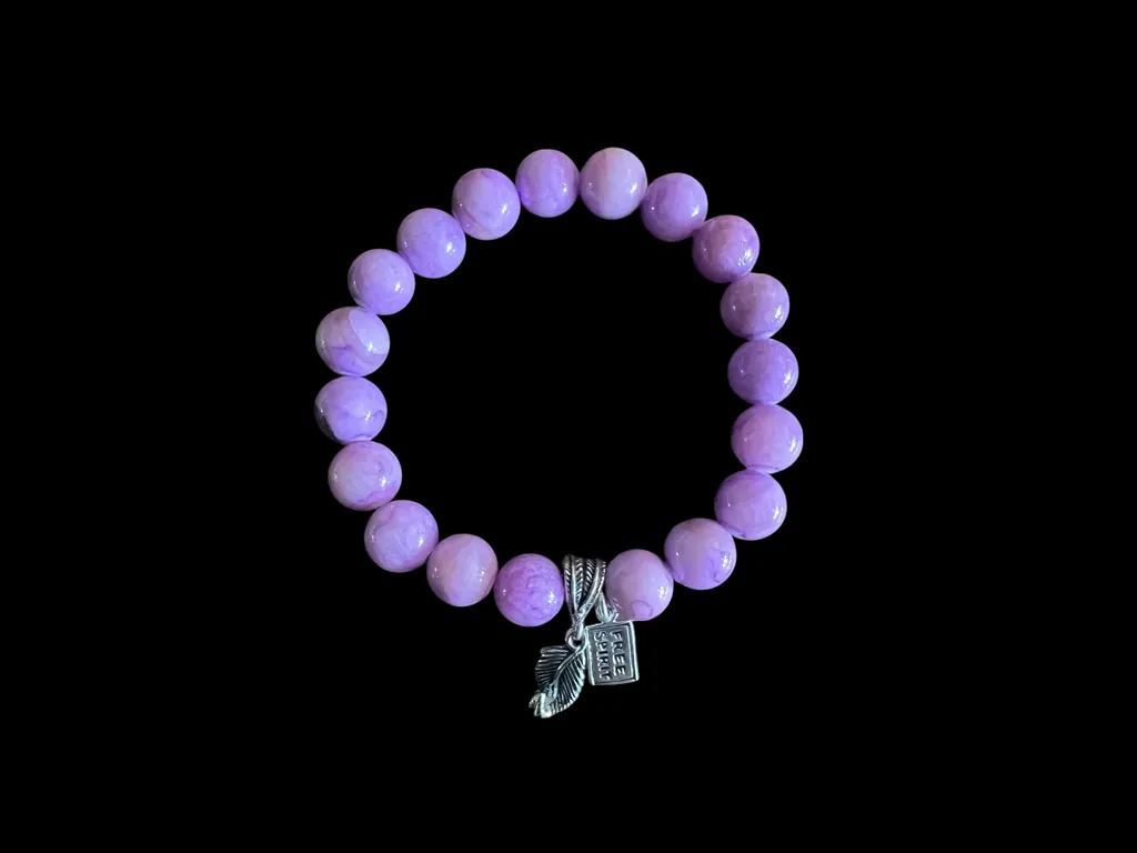 Unieke stijl: De combinatie van paarse jade, zilveren veer en een verfijnd logo maakt deze armband uniek en stijlvol.