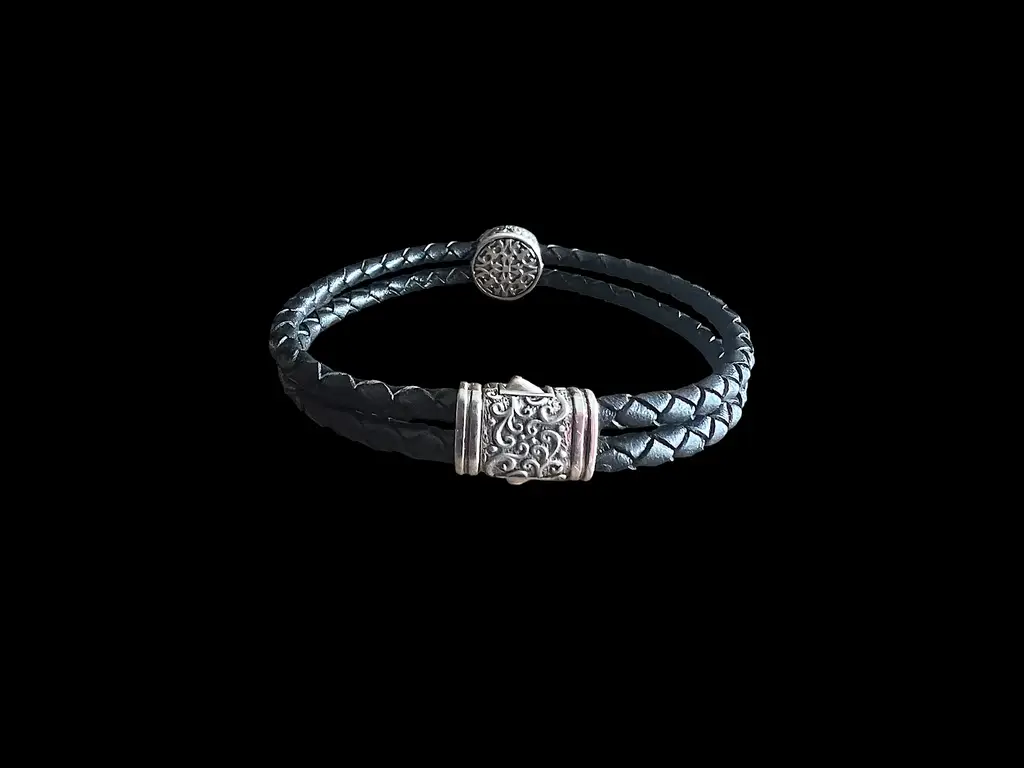 De lederen armband Kompass is een stoere en stijlvolle accessoire die perfect is voor de man die zijn eigen koers vaart. Deze armband bestaat uit twee losse lederen armbandjes die samen een robuuste en modieuze uitstraling geven. In het midden van de armband bevindt zich een afbeelding van een kompas, wat symbool staat voor richting en avontuur.