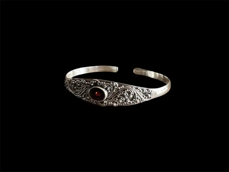 Een opvallend kenmerk van de Siti Red is het rood granaat steentje. Dit steentje voegt een vleugje kleur en glamour toe aan de armband, waardoor het een echte blikvanger is. Het diepe rood van de granaat symboliseert passie en energie, wat deze armband een betekenisvolle keuze maakt.