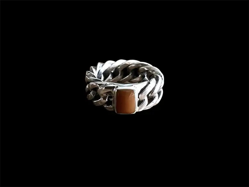 De zilveren dames en heren ring “Feel Brown” is een opvallend sieraad dat zowel stoer als eigentijds is. Deze ring combineert een robuuste schakelstructuur met de verfijning van een edelsteen, wat zorgt voor een tijdloos ontwerp dat zich moeiteloos aanpast aan elke stijl.