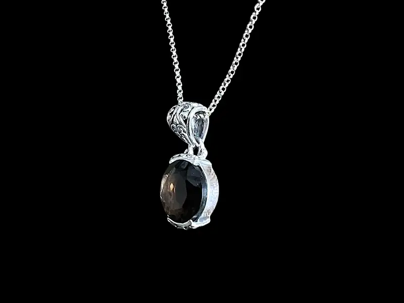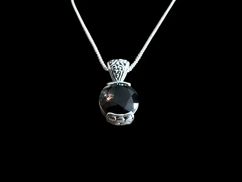 Ontdek de elegante en veelzijdige zilveren dames hanger en ketting van Aïda Brown. Deze verfijnde sieraden zijn ontworpen met oog voor detail en combineren moeiteloos met de modetrends van dit jaar. De hanger heeft een diameter van 1 centimeter en is stijlvol omlijst met een prachtig rookkwarts steentje. Het tijdloze ontwerp maakt het een perfecte aanvulling op elke sieradencollectie.