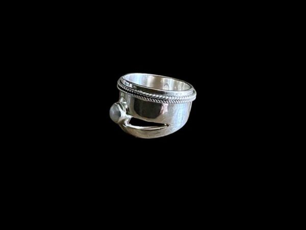Deze ring is ook verkrijgbaar met een onyx steentje in plaats van de moeder van de parel. Dit biedt een donkerdere, meer gedurfde uitstraling voor wie op zoek is naar een onderscheidende stijl.