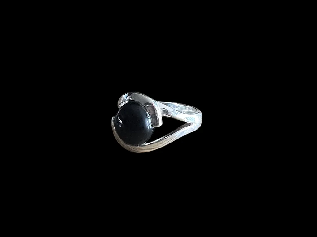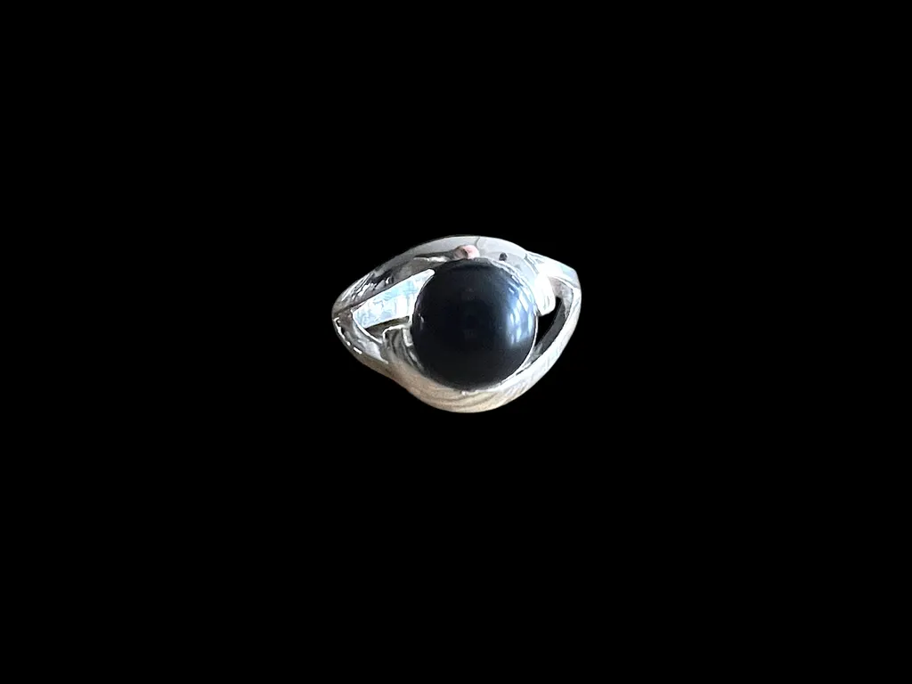 Een opvallend kenmerk van deze ring is de onyx steen die er centraal in is geplaatst. Onyx staat bekend om zijn diepe, donkere kleur die een gevoel van mysterie en verfijning toevoegt aan de ring. Bovendien heeft de ring een subtiele vorm die doet denken aan een beschermend oog, wat vaak wordt geassocieerd met bescherming en geluk.