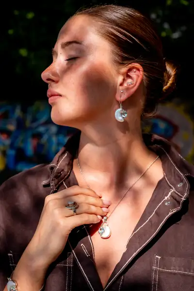 - Hanger: Een delicate hanger die de look helemaal afmaakt, ideaal om te dragen met een eenvoudige ketting voor een subtiele maar verfijnde uitstraling.